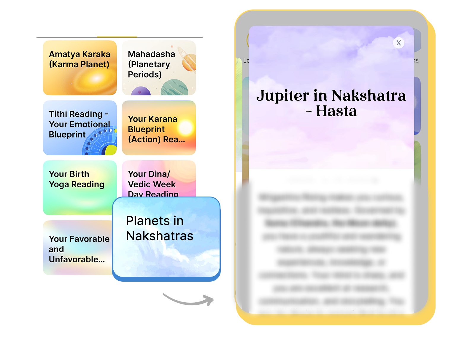 We’ve expanded our Birth Chart feature to include Jupiter in Nakshatras-just like we did for your Rising Sign, Sun, and Saturn-so you can now uncover how Jupiter’s blessings, wisdom, and abundance shape your life.