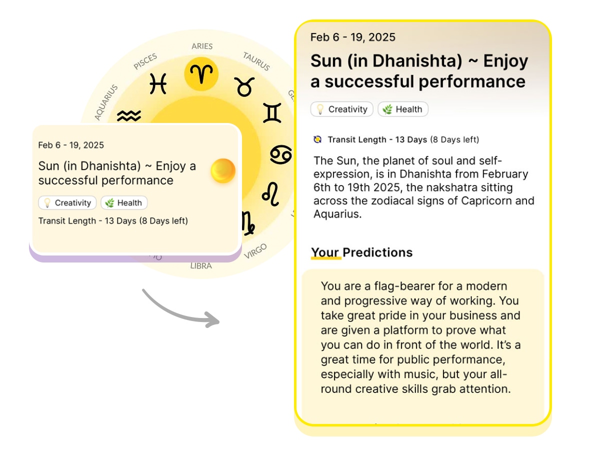 As the Sun moves through the last two padas of Dhanishta Nakshatra in Aquarius, it illuminates themes of ambition, leadership, and material success. This phase enhances strategic thinking and a goal-oriented mindset, encouraging us to find progressive yet structured ways to achieve success. Dhanishta is associated with the power of rhythm and prosperity, making this an ideal time to align your ambitions with a higher purpose.