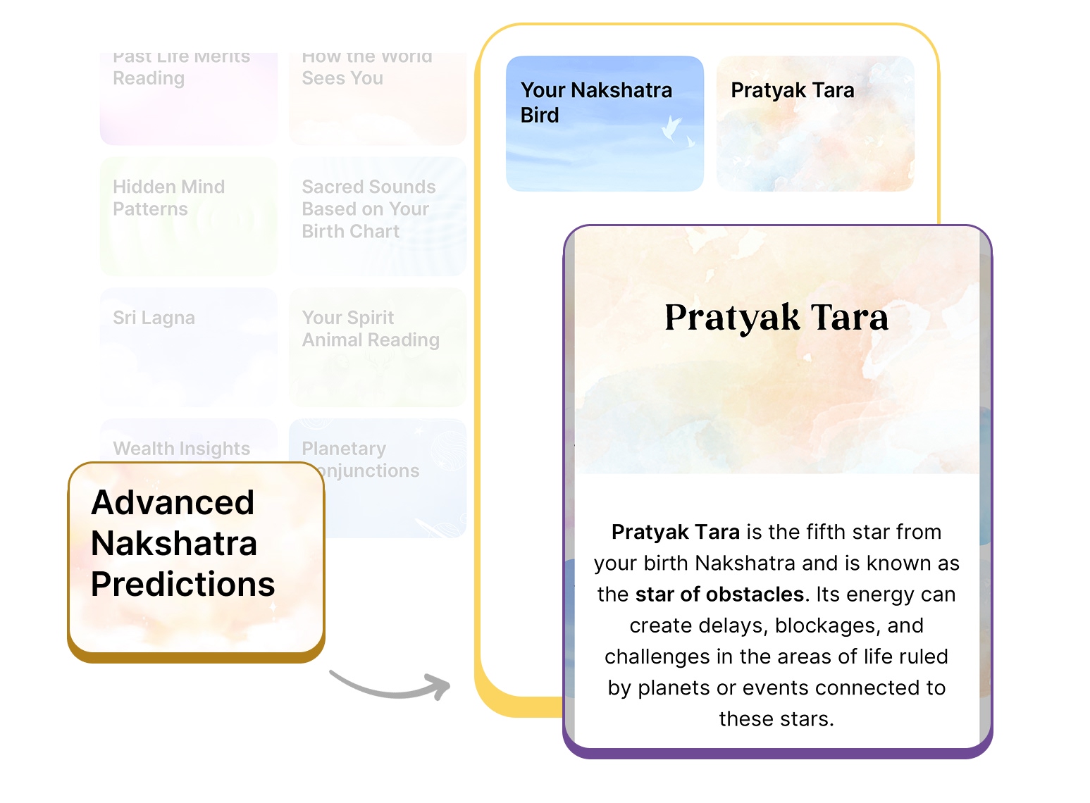 Your Pratyak Tara predictions are now available in the Birth Chart section of the align27 app, under Advanced Nakshatra Insights.