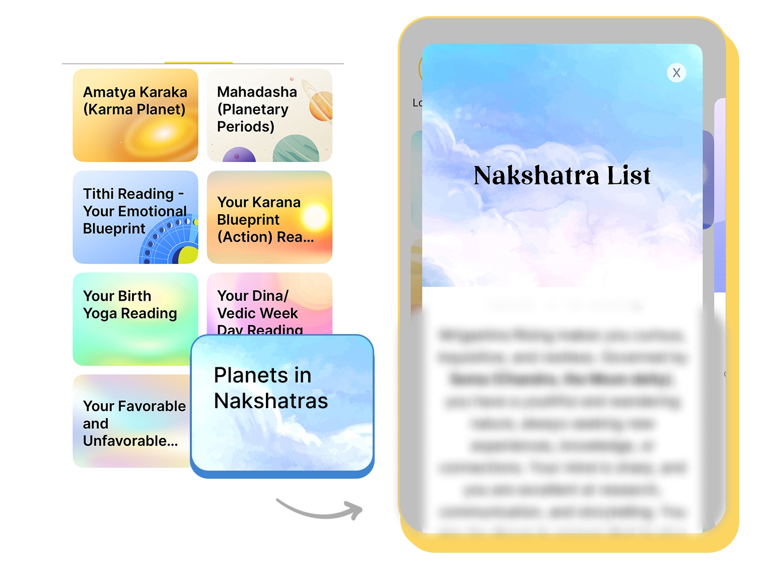 Enhance your connection with the auspicious energy of Pushya Nakshatra by performing specific rituals on certain days. The align27 app features a “3 Rituals for Today“ section, where you’ll receive a unique ritual whenever the transit Moon aligns with Pushya Nakshatra. These carefully curated rituals help you harness the prosperity and blessings associated with this sacred asterism.