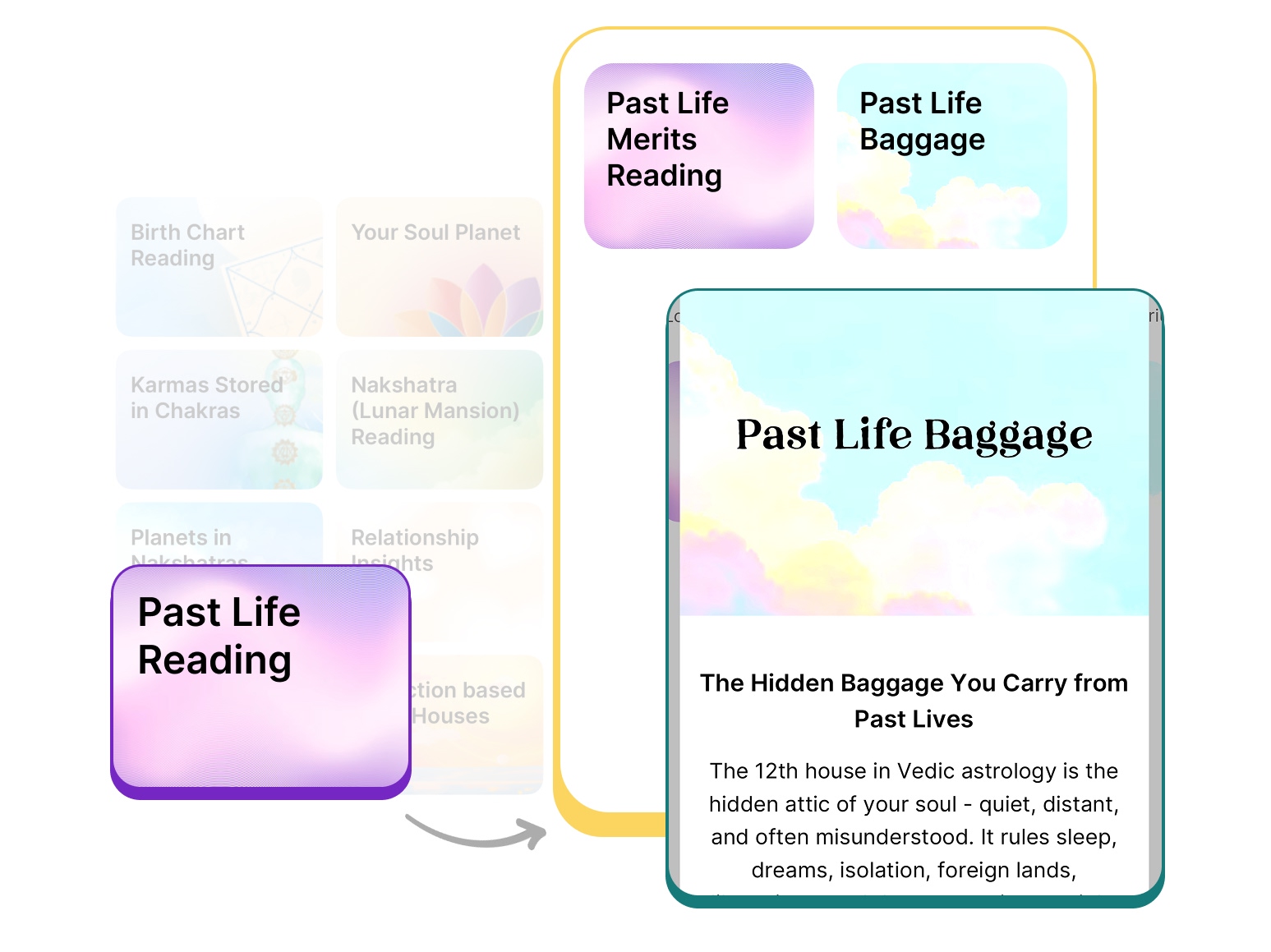 Now, you can explore it with our new feature: Past Life Baggage, under the Past Life Reading section of your birth chart.