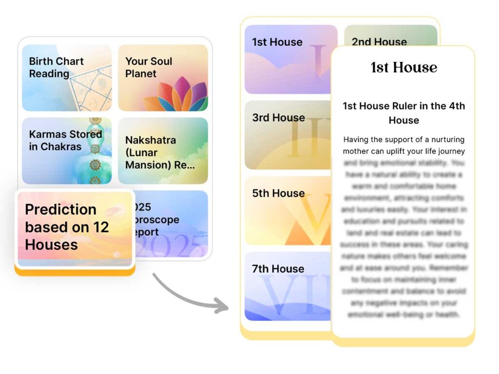 Our new House Ruler Placement reading reveals insights based on where the ruler of each house in your chart is placed. This ancient Vedic astrology technique unlocks profound truths about your life, from your career to relationships, health, and more.