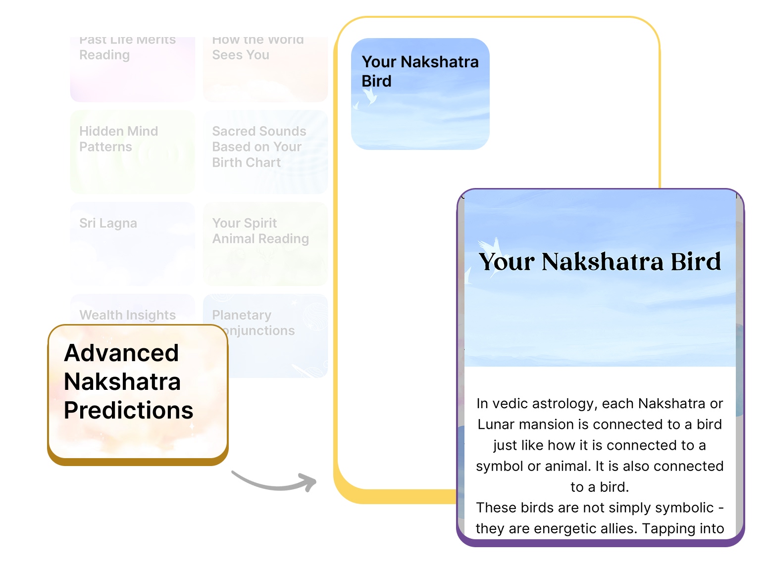 In vedic astrology, each Nakshatra or Lunar mansion is connected to a bird just like how it is connected to a symbol or animal. It is also connected to a bird.