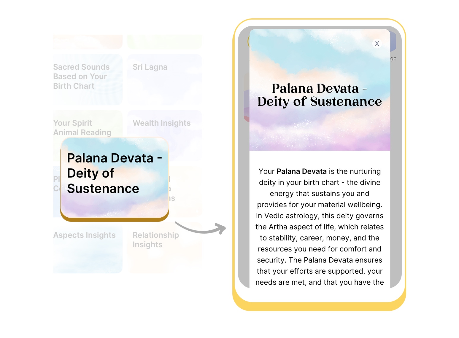 Your Palana Devata is the nurturing deity in your birth chart – the divine energy that sustains you and provides for your material wellbeing. In Vedic astrology, this deity governs the Artha aspect of life, which relates to stability, career, money, and the resources you need for comfort and security.