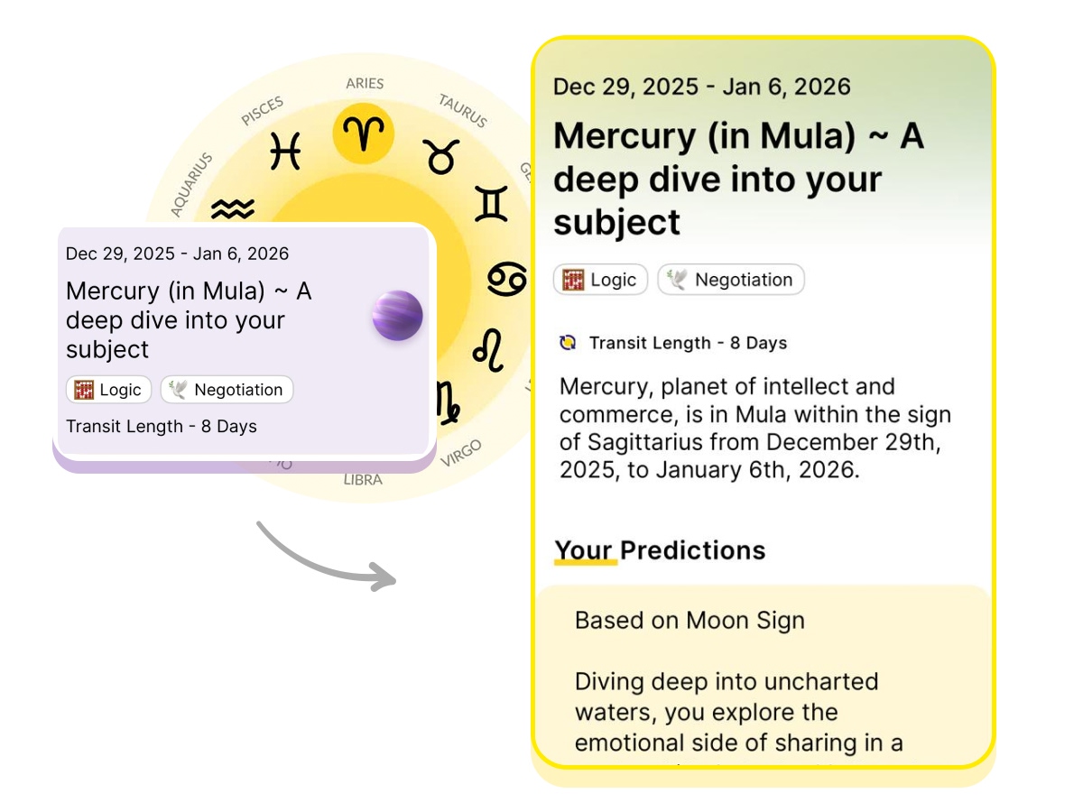 Mercury, planet of intellect and commerce, is in Mula within the sign of Sagittarius from December 29th, 2025, to January 6th, 2026.