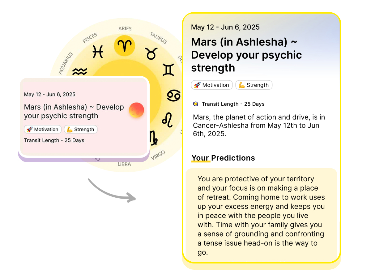 Mars, the planet of action and drive, is in Cancer-Ashlesha from May 12th to Jun 6th, 2025.
