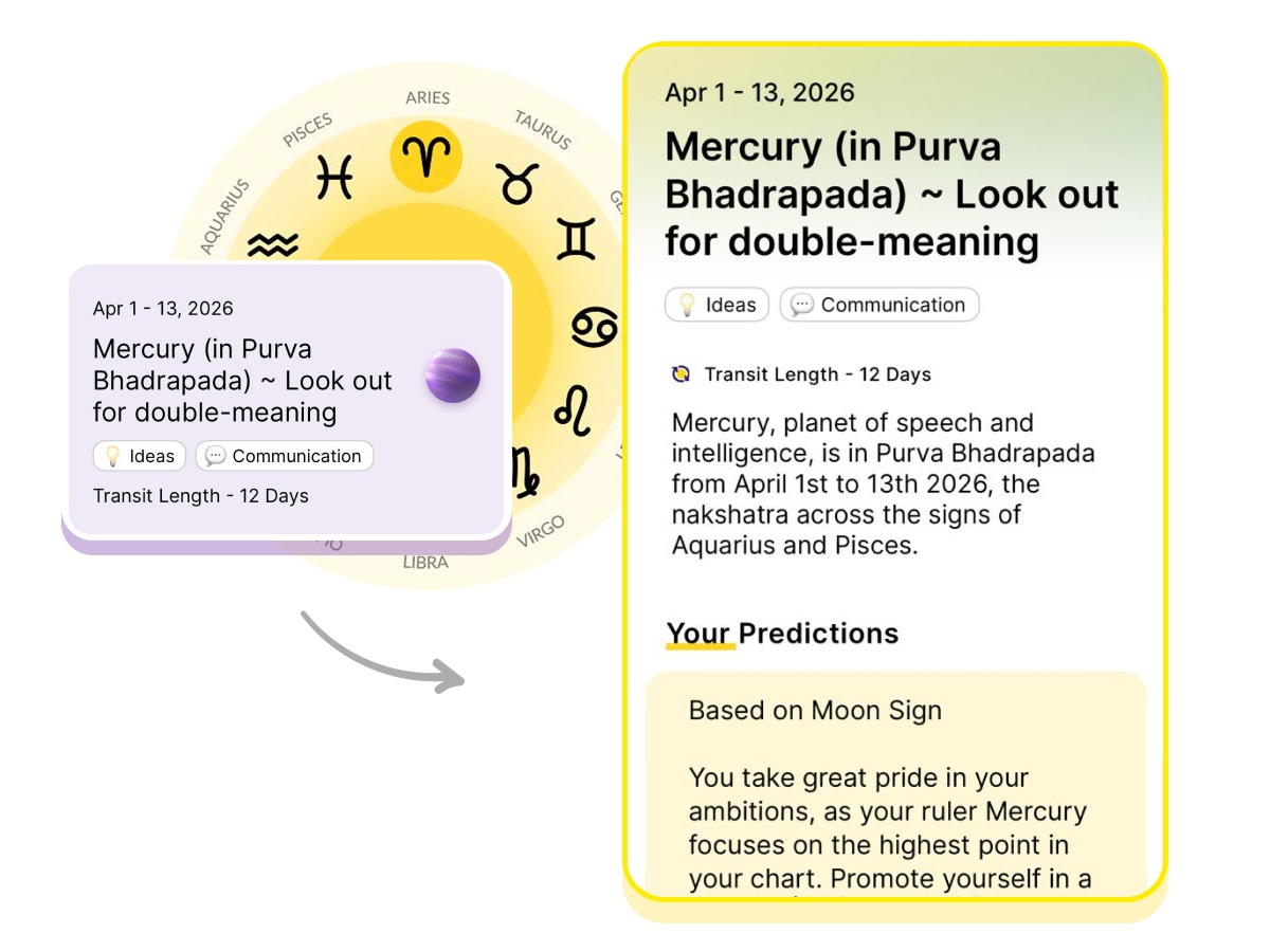 Mercury, planet of speech and intelligence, is in Purva Bhadrapada from April 1st to 13th 2026, the nakshatra across the signs of Aquarius and Pisces.