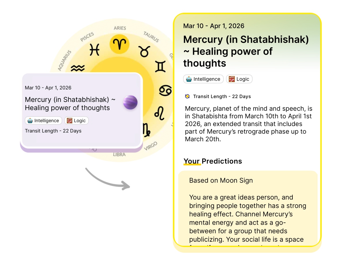 Mercury, planet of the mind and speech, is in Shatabishta from March 10th to April 1st 2026, an extended transit that includes part of Mercury’s retrograde phase up to March 20th.