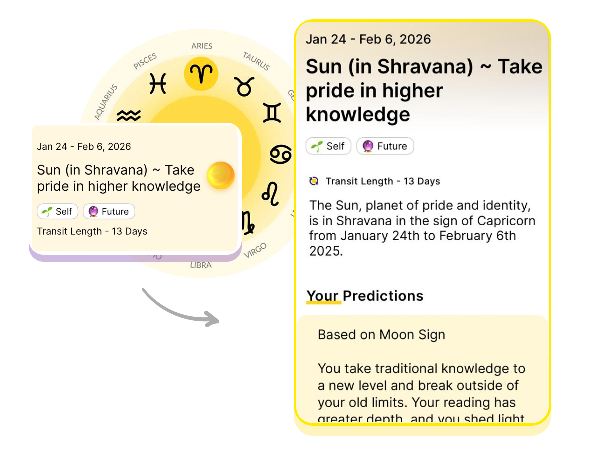 The Sun, planet of pride and identity, is in Shravana in the sign of Capricorn from January 24th to February 6th 2025.