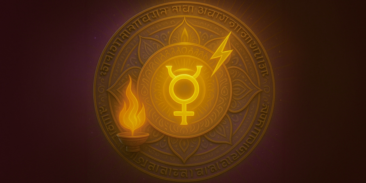 Mercury, planet of speech and intelligence, is in Vishakha nakshatra across the signs of Libra and Scorpio from October 16th to 27th, 2025.