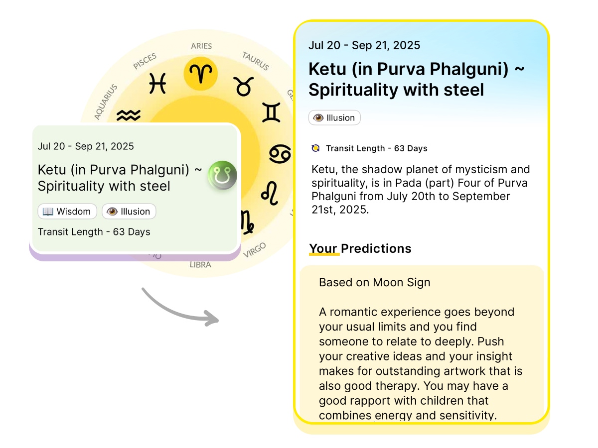 Ketu, the shadow planet of mysticism and spirituality, is in Pada (part) Four of Purva Phalguni from July 20th to September 21st, 2025.