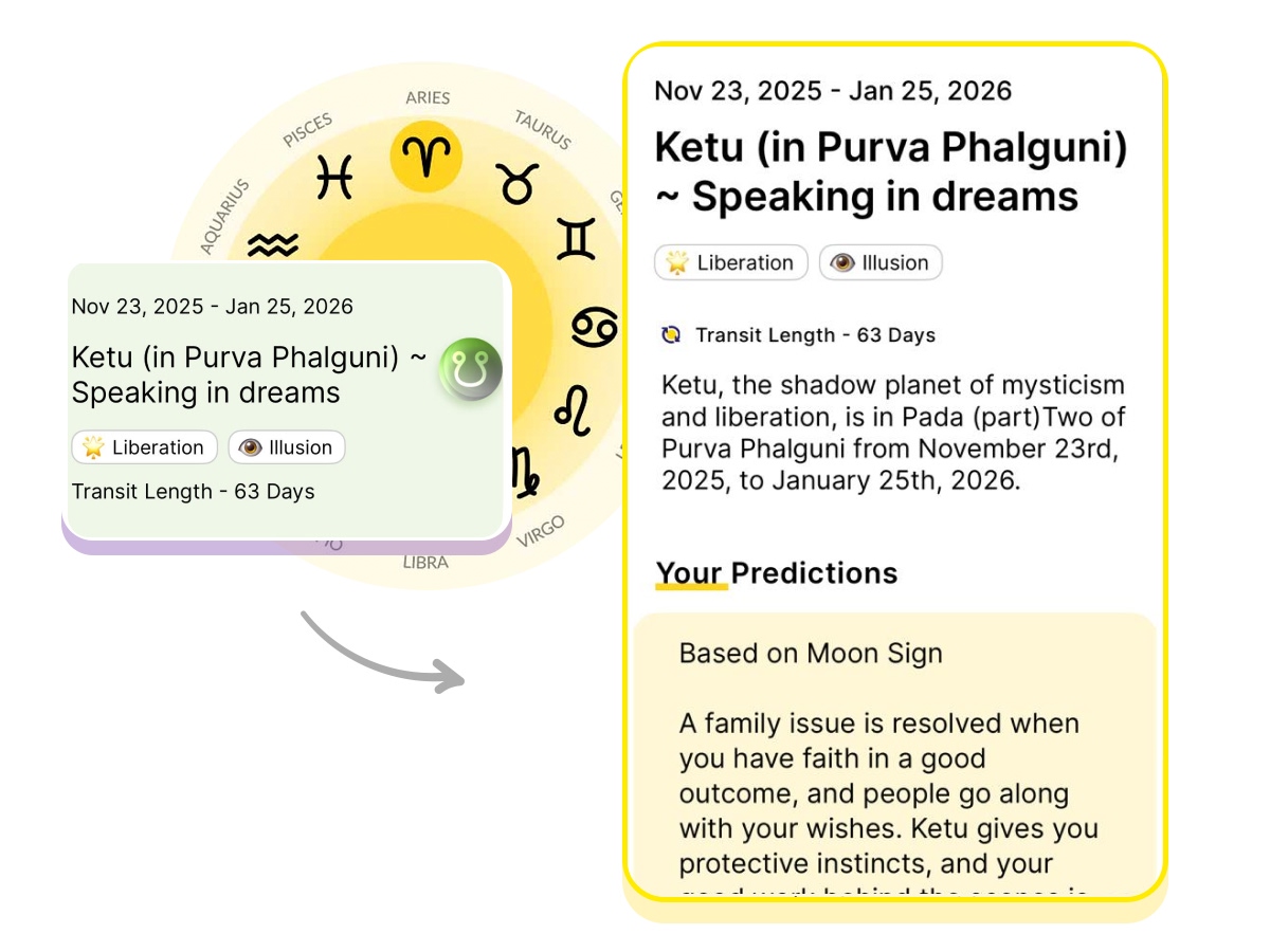 Ketu, the shadow planet of mysticism and liberation, is in Pada (part) Two of Purva Phalguni from November 23rd, 2025, to January 25th, 2026.