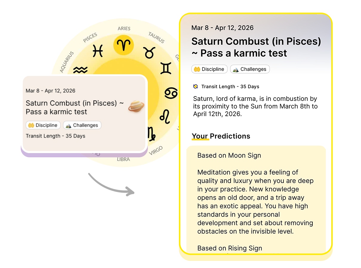 Saturn, lord of karma, is in combustion by its proximity to the Sun from March 8th to April 12th, 2026.