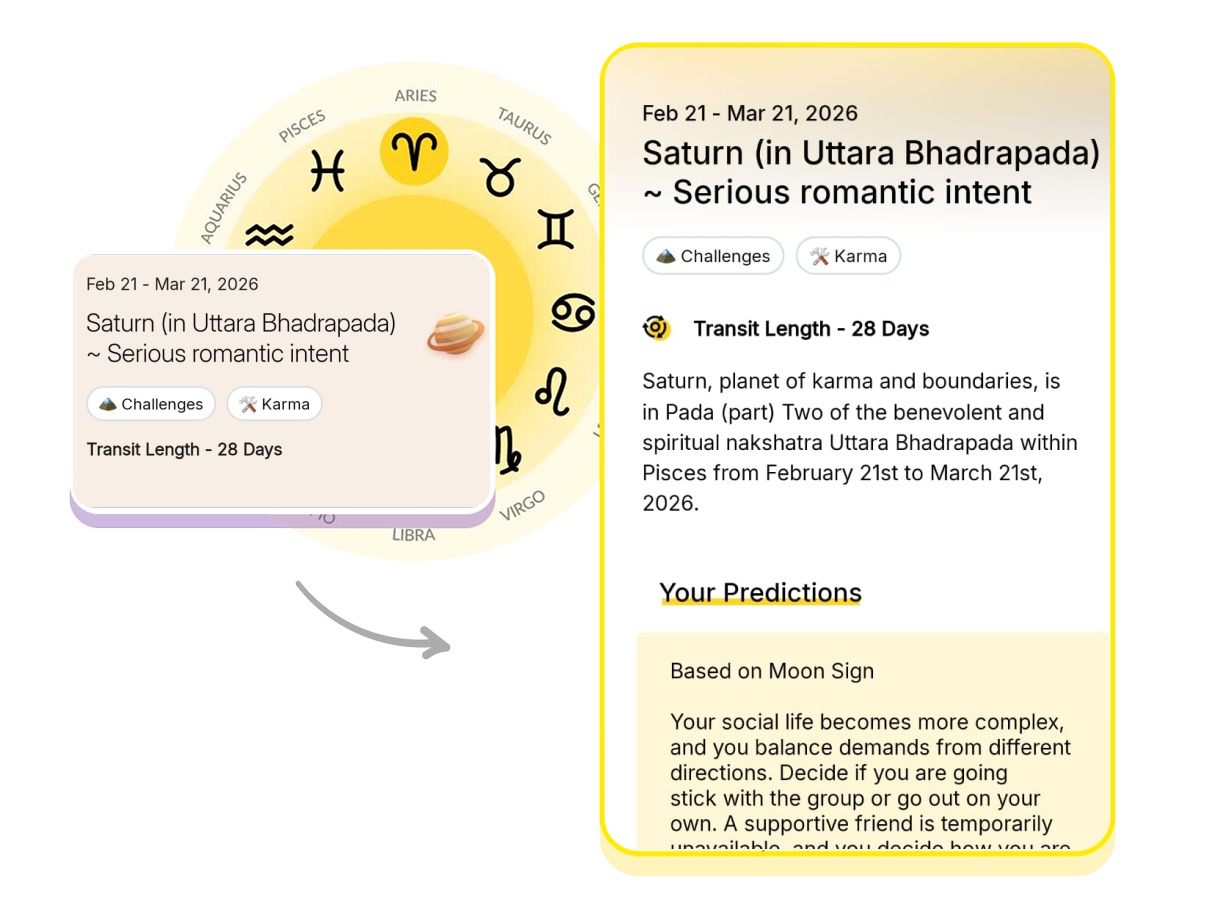 Saturn, planet of karma and boundaries, is in Pada (part) Two of the benevolent and spiritual nakshatra Uttara Bhadrapada within Pisces from February 21st to March 21st, 2026.