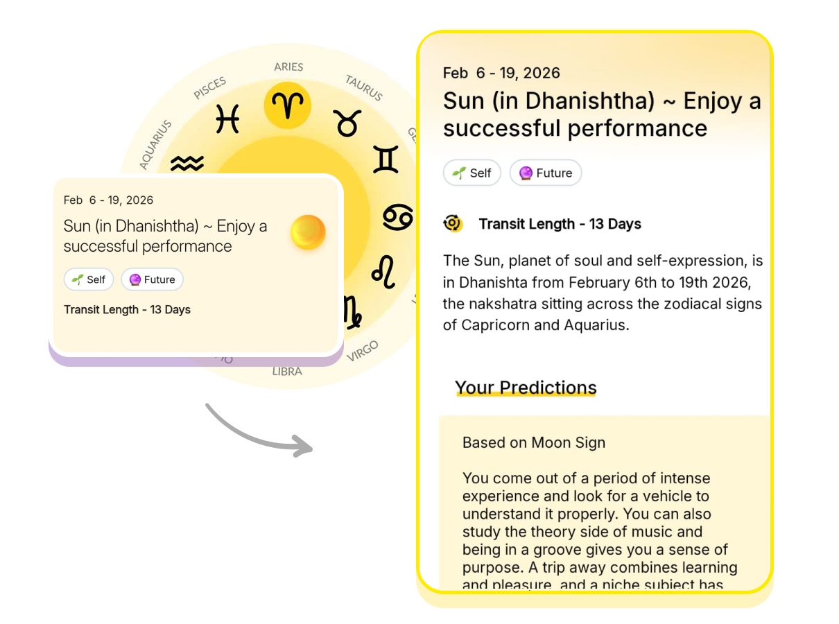 The Sun, planet of soul and self-expression, is in Dhanishta from February 6th to 19th 2026, the nakshatra sitting across the zodiacal signs of Capricorn and Aquarius.
