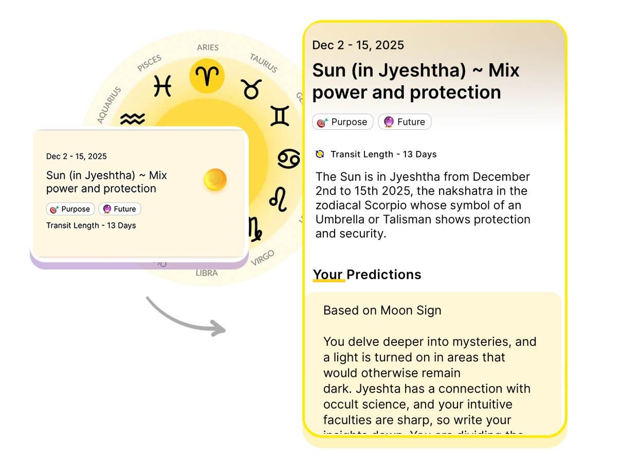 The Sun is in Jyeshta from December 2nd to 15th 2025, the nakshatra in the zodiacal Scorpio whose symbol of an Umbrella or Talisman shows protection and security.