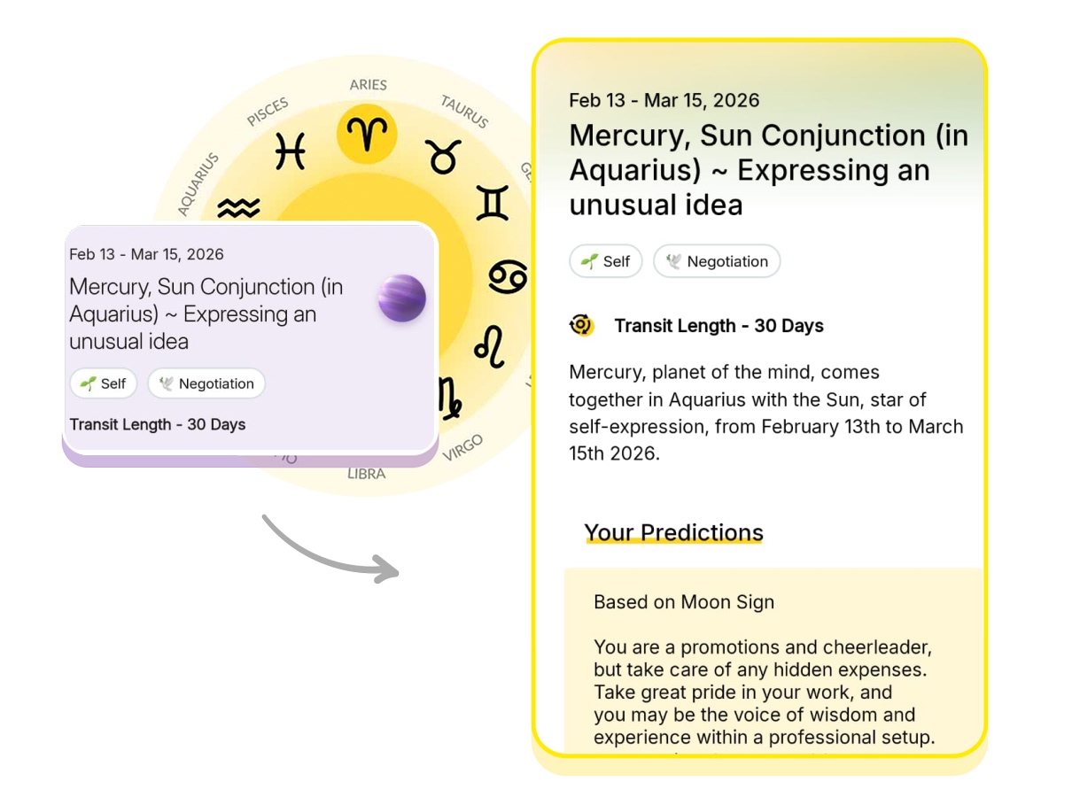 Mercury, planet of the mind, comes together in Aquarius with the Sun, star of self-expression, from February 13th to March 15th 2026.