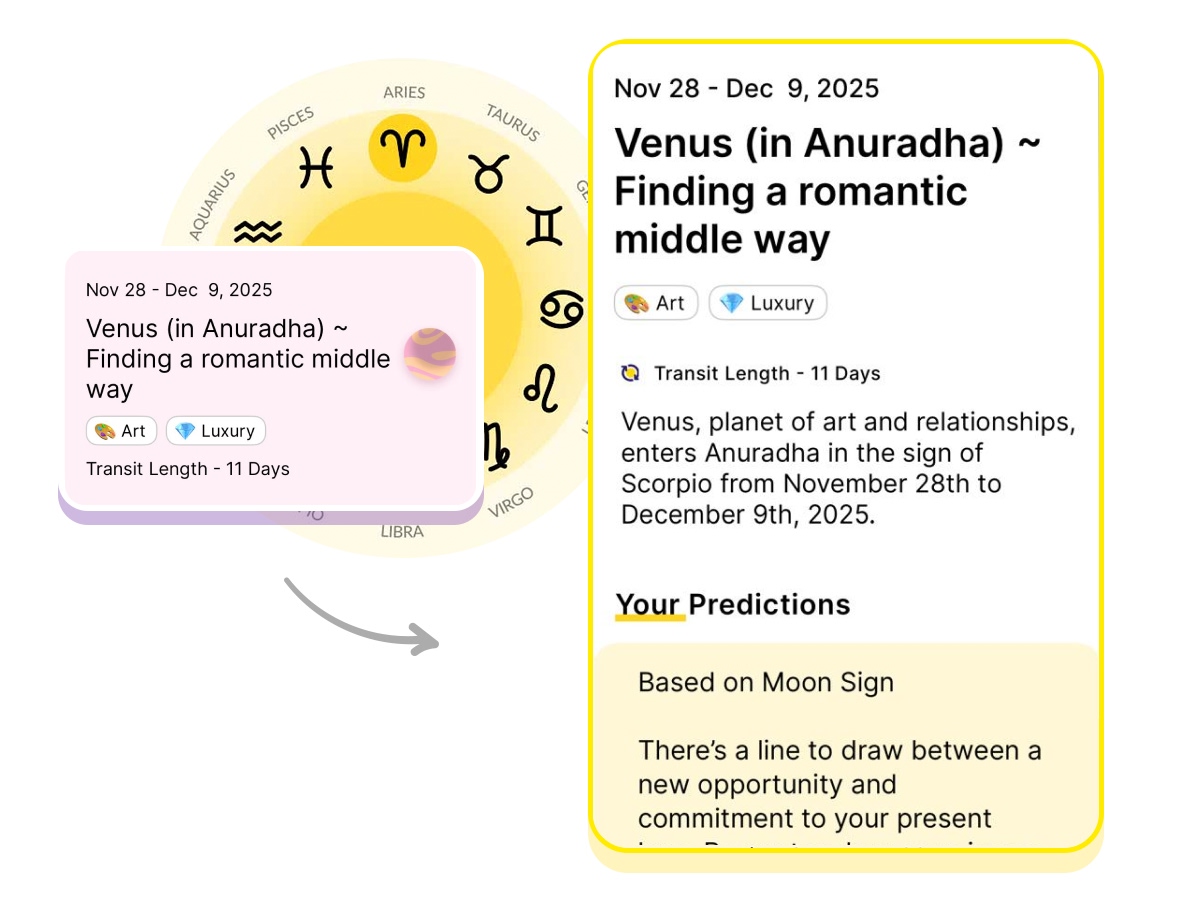 Venus, planet of art and relationships, enters Anuradha in the sign of Scorpio from November 28th to December 9th, 2025.