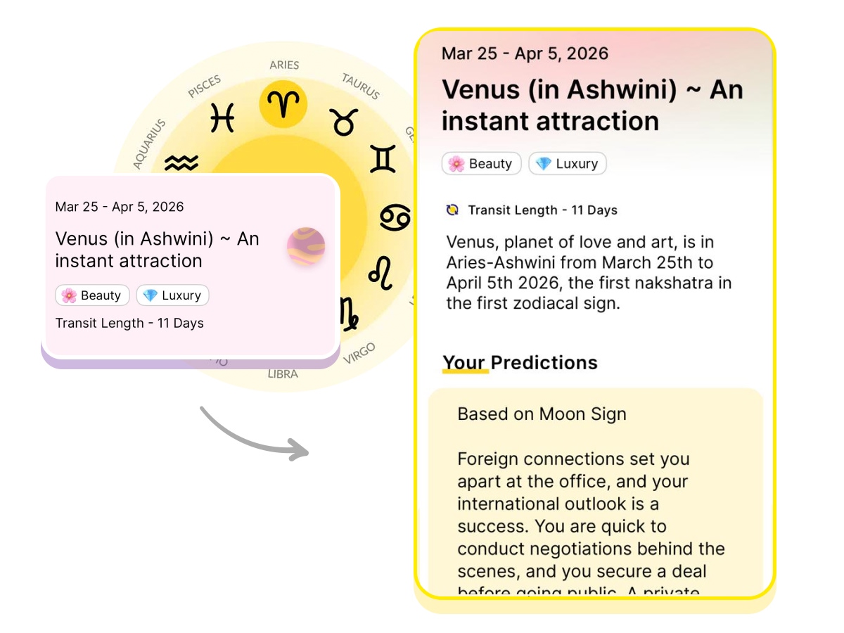 Venus, planet of love and art, moves from Pisces-Revati to Aries-Ashwini between March 23rd and 28th, 2026.