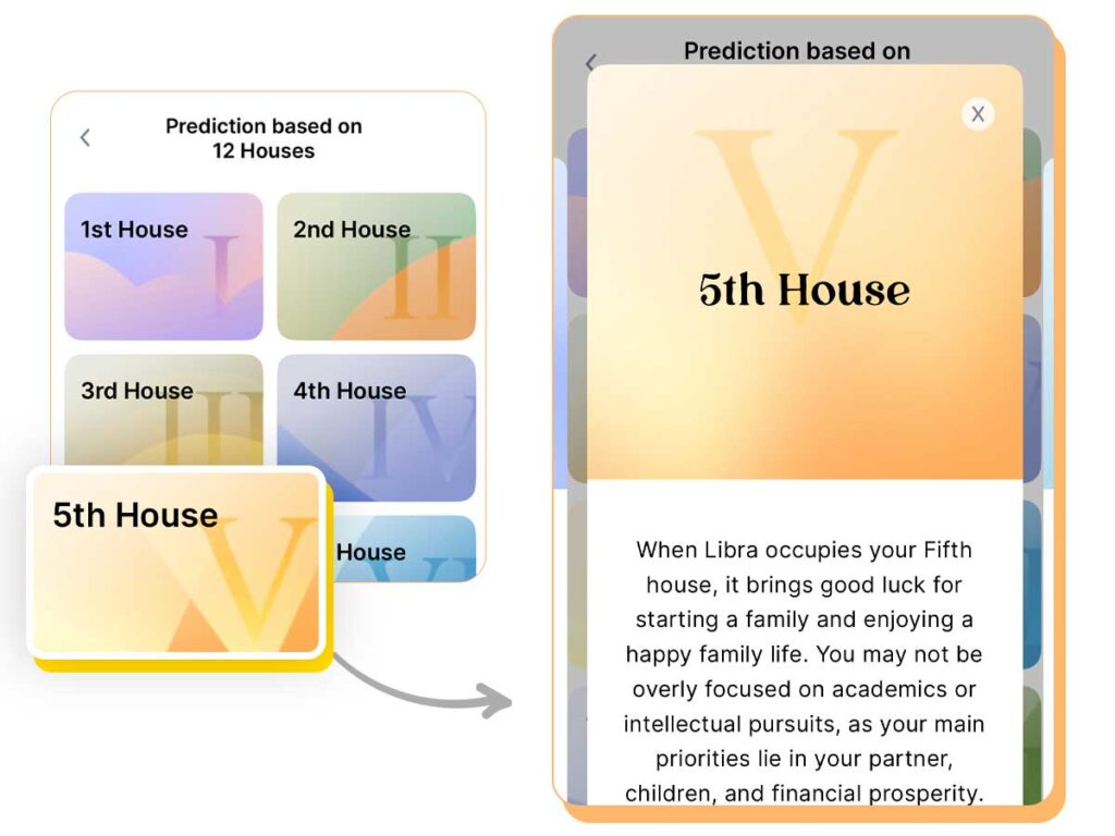 The align27 app’s birth chart feature offers detailed insights into the 5th house, including the planets in it, the sign, its ruler, and their placements!